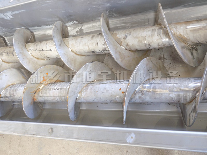 螺旋輸送機的工作原理是旋轉(zhuǎn)的螺旋葉片將物料在槽或管中推移而得到輸送物料的目的,散料在自重和機殼的摩擦力作用下堆積在槽的下部,不隨葉片旋轉(zhuǎn)而被葉片推動前進。螺旋輸送機旋轉(zhuǎn)軸上焊的螺旋葉片,葉片的面型根據(jù)輸送物料的不同有實體面型、帶式面型、葉片面型等型式。螺旋輸送機的螺旋軸在物料運動方向的終端有止推軸承以隨物料給螺旋的軸向反力,在機長較長時,應加中間吊掛軸承。